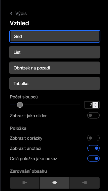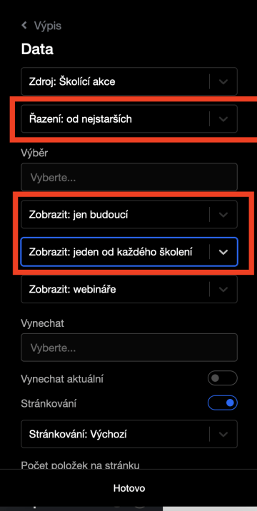 Jak nastavit výpis školení na stránce Vzdělávání: