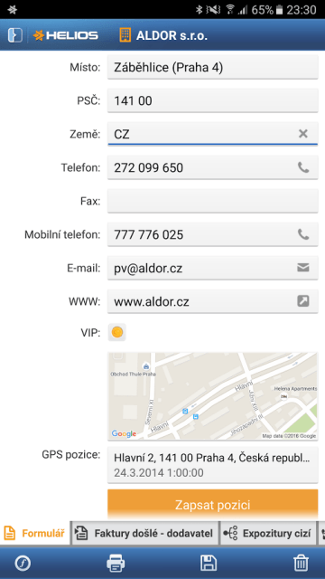 - Samozřejmostí je přímé vytáčení telefonních čísel z aplikace, odesílání e- mailů, otevírání webových stránek a polohy na mapě.