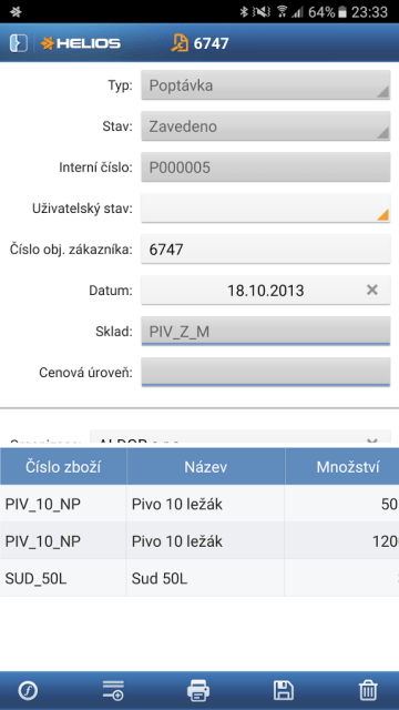 - Pomocí Helios Mobile budete moci prodávat přímo v terénu – od objednávky, přes tvorbu ceny až po odeslání potvrzení v pdf formátu.