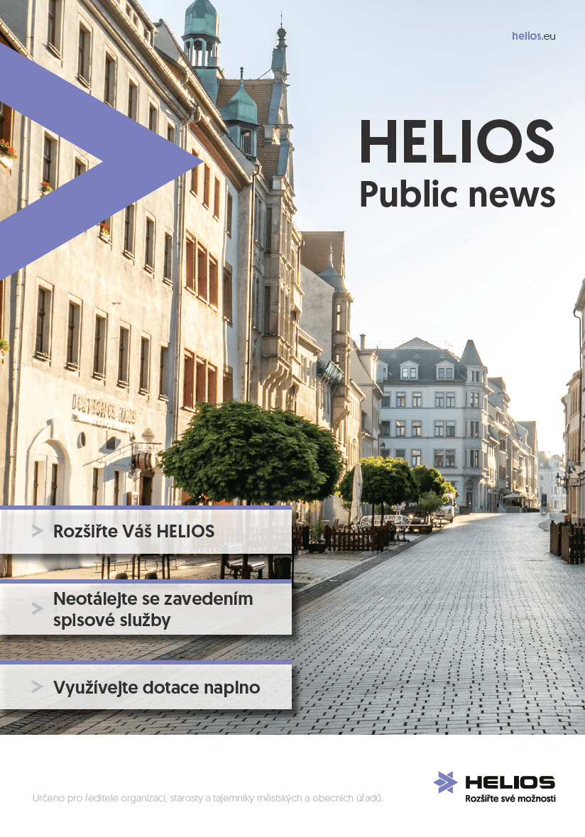 Pro naše zákazníky vydáváme magazín HELIOS Public News, abychom vám pravidelně přinášeli zajímavé informace z oblasti veřejné správy. V každém vydání najdete inspirativní příběhy našich zákazníků, aktuální trendy a užitečné informace týkající se vašeho systému HELIOS.