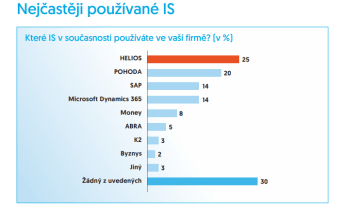 Mezi nejpoužívanější systémy na českém trhu patří POHODA od STORMWARE, Helios od Asseco Solutions a SAP. Klienti se při výběru ERP řešení rozhodují podle uživatelské přívětivosti, bezpečnosti a servisu, nejméně je zajímá vizuální stránka softwaru. Největší motivací pro pořízení a zavedení ERP produktu je vyšší efektivita práce a úspora finančních nákladů.