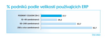 V minulém roce už dvě pětiny českých firem, které mají deset a více zaměstnanců, používaly nějakou formu podnikového informačního systému (ERP). U společností, které mají více než 250 zaměstnanců, dosahuje tento podíl téměř 93 procent.