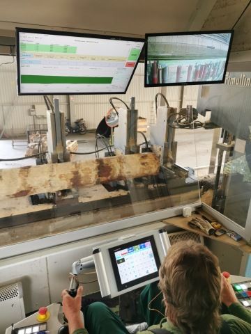 Odkorňovačka a pásová pila jsou napojeny na systém Helios Easy, kde se zobrazují data o zpracovávaném materiálu a výtěžnost řezání.